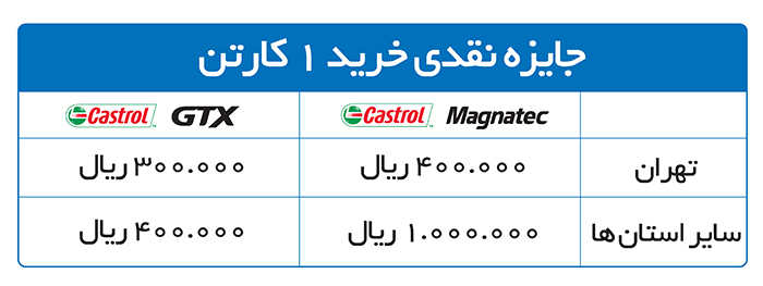 - در این طرح جوایز صرفاً به سفارشات محصولات مگناتک و جیتیایکس تعلق میگیرند و سایر محصولات کاسترول مشمول این طرح نمیشوند.